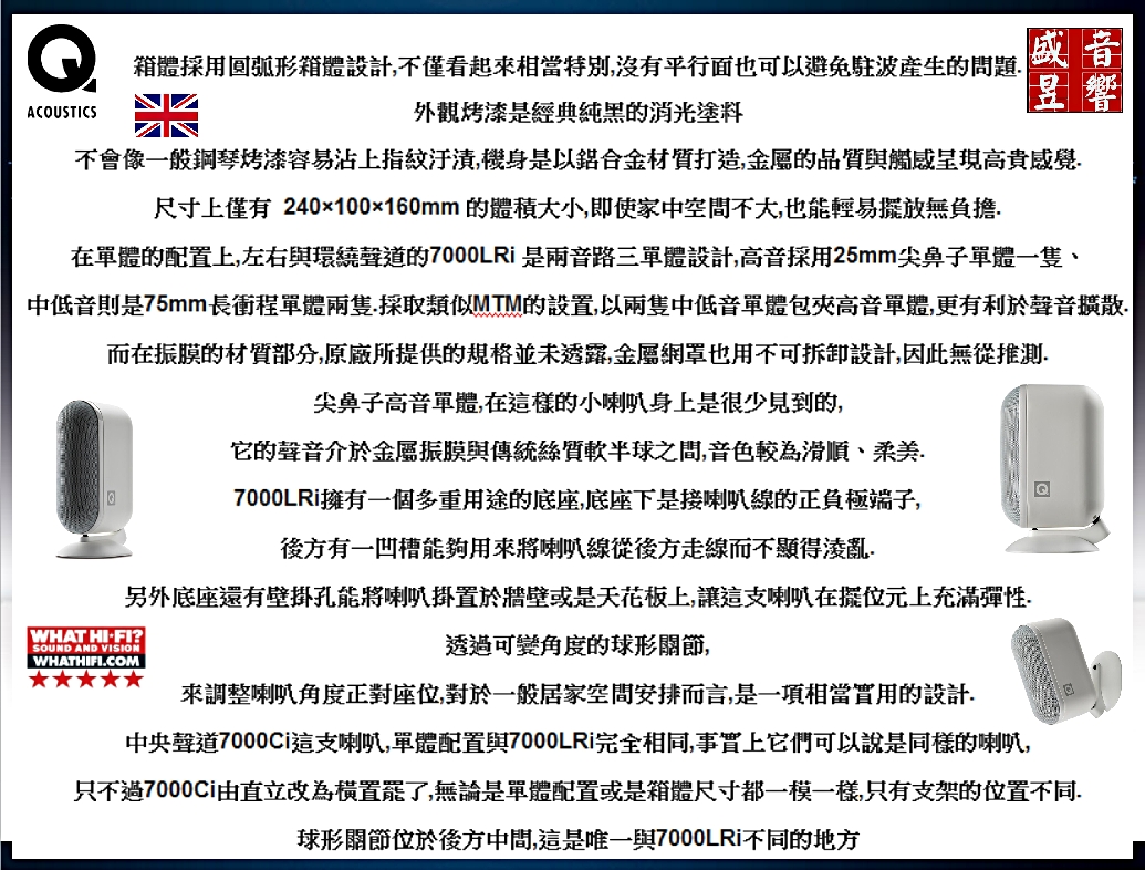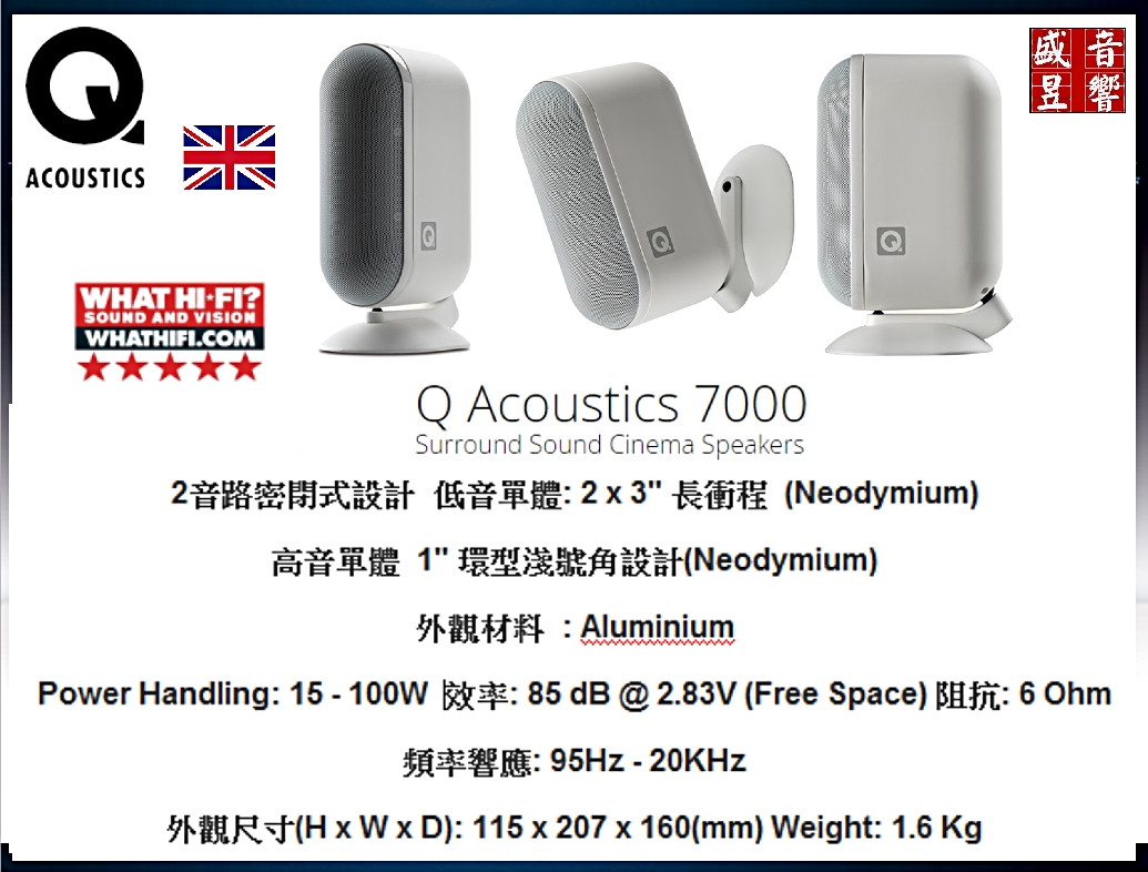 英國 Q Acoustics 7000i 5.1聲道喇叭組 - 韻城公司貨 / 隔日到貨
