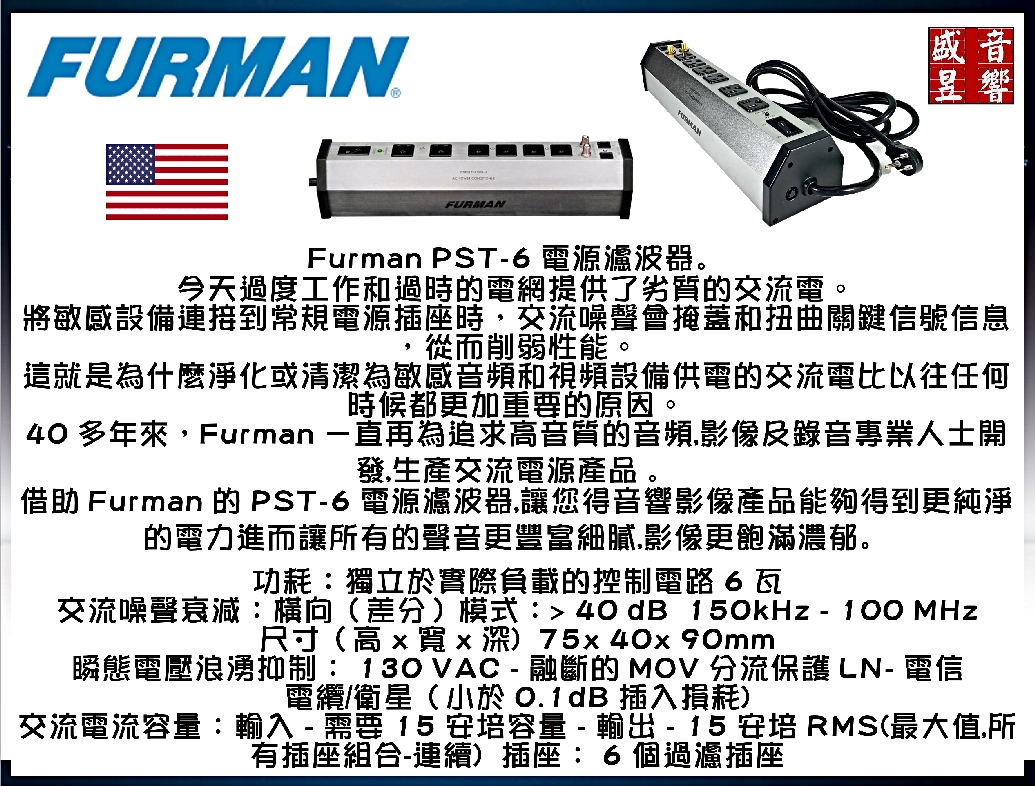『現貨』美國 FURMAN PST-6 電源濾波器 ~ 公司貨